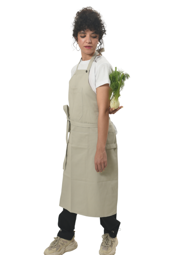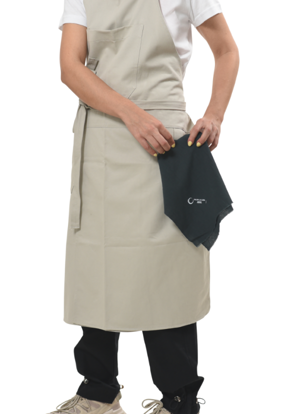 Delantal largo de gabardina 100% algodón para profesionales gastronómicos.