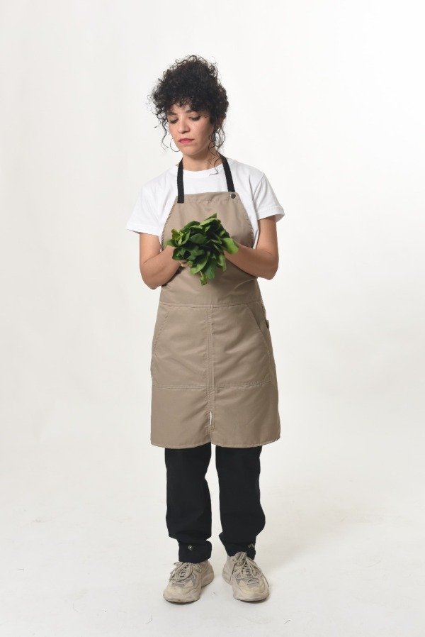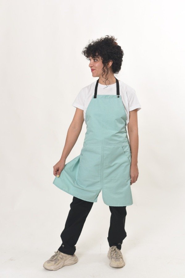 Bolsillos prácticos, apertura de falda para mayor comodidad y ajuste regulable en cuello.